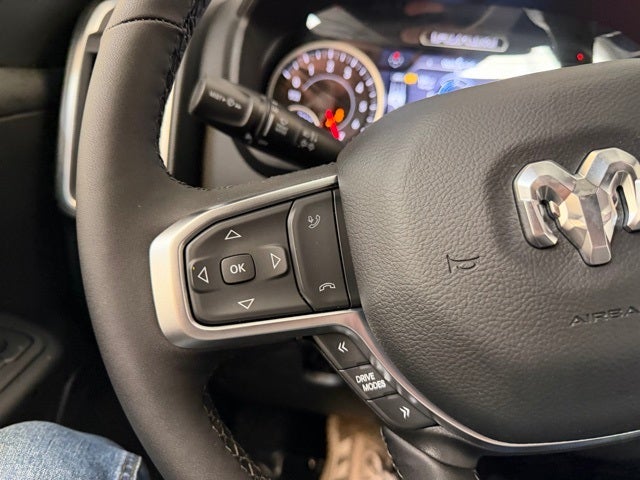 Features Include:, 1500 Big Horn/Lone Star, 4D Crew Cab, HEMI 5.7L V8 Multi Displacement VVT eTorque, 8-Speed Automatic, 4WD, Billet Silver Metallic Clearcoat, Black Cloth, 115V Auxiliary Power Outlet, 115V Auxiliary Rear Power Outlet, 12 Touchscreen Display, 3.92 Rear Axle Ratio, 400W Inverter, 4G LTE Wi-Fi Hot Spot, Accent Color Door Handles, Accent Color Premium Power Mirrors, Accent Color Tailgate Handle, Anti-Spin Differential Rear Axle, Apple CarPlay/Android Auto, Auto Power-Folding Mirrors, Auto-Dimming Rear-View Mirror, Big Horn Level 2 Equipment Group, Black Exterior Truck Badging, Black Headlamp Bezels, Black Interior Accents, Black Tail Lamp Bezels, Body Color Fender Flares, Body Color Front Bumper, Bucket Seats, Center Console Parts Module, Cluster 7.0 TFT Color Display, Configurable Drive Mode, Connectivity - US/Canada, Deluxe Cloth Bucket Seats, Disassociated Touchscreen Display, Front Seat Back Map Pockets, Full Length Floor Console, Glove Box Lamp, GPS Antenna Input, GPS Navigation, Grille Black Surround Black Mesh, HD Radio, Heated Front Seats, Heated Steering Wheel, Integrated Center Stack Radio, Leather Wrapped Steering Wheel, LED Footwell Lighting, Manual Adjust 4-Way Front Passenger Seat, Night Edition, Occupant sensing airbag, Overhead LED Lamps, ParkView Rear Back-Up Camera, Power 2-Way Driver Lumbar Adjust, Power Adjust 8-Way Driver Seat, Power Adjustable Pedals, Premium Overhead Console, Quick Order Package 27Z Big Horn, RAM Grille Badge - Black, Rear 60/40 Folding Seat, Rear Center Armrest, Rear Power Sliding Window, Rear Window Defroster, Remote Tailgate Release, Security Alarm, SiriusXM Radio Service, Steering Wheel Mounted Audio Controls, Universal Garage Door Opener, USB Host Flip, Variably intermittent wipers, Wheels: 20 x 9.0 Aluminum Painted Clad.