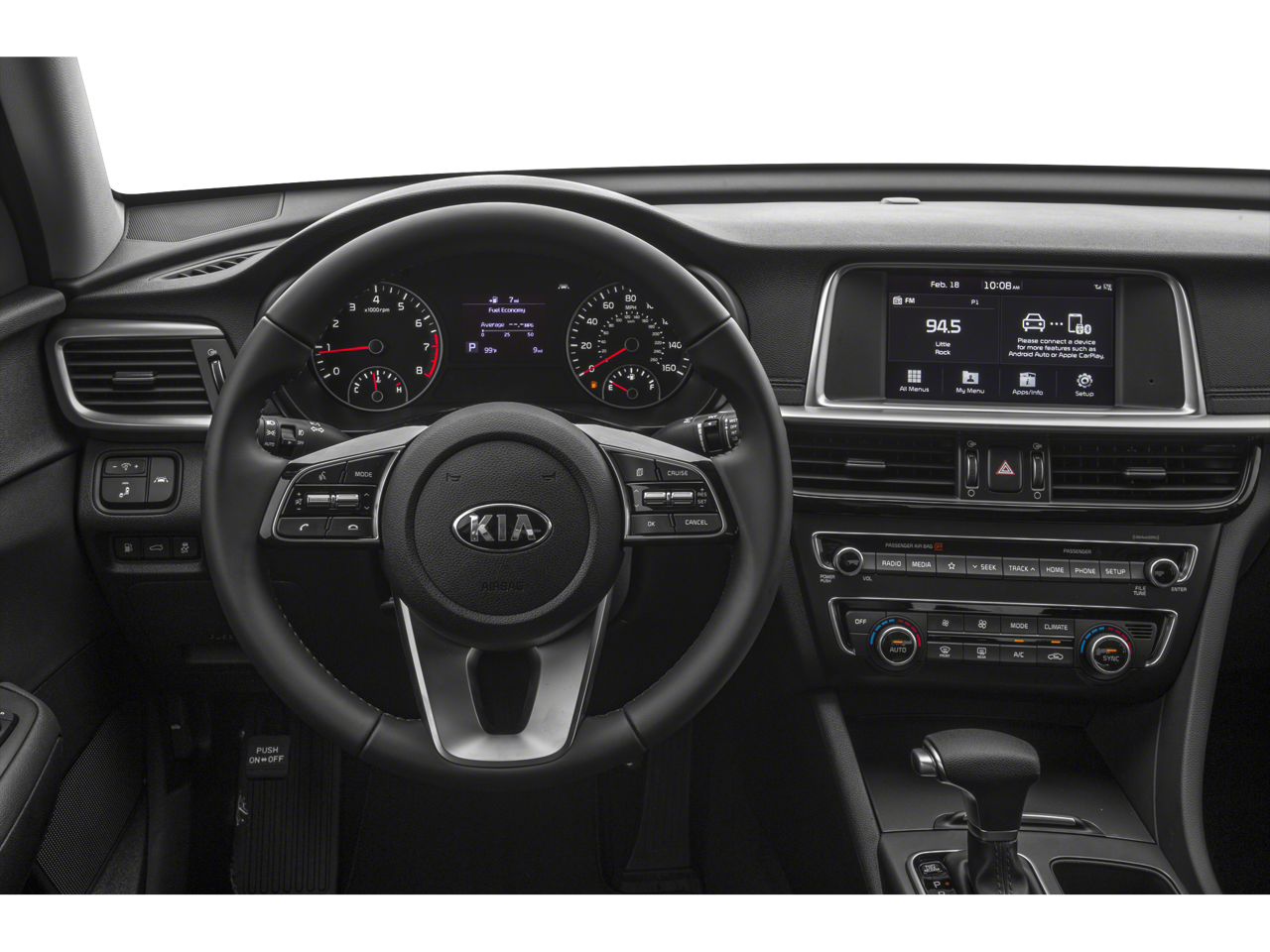Under the hood, you'll find a potent 2.4L I4 DGI DOHC engine mated to a smooth-shifting 6-Speed Automatic with Sportmatic transmission, delivering an impressive 24 city / 33 highway MPG. This front-wheel-drive Optima provides a confident, responsive driving experience with features like power steering, four-wheel independent suspension, and speed-sensing steering.