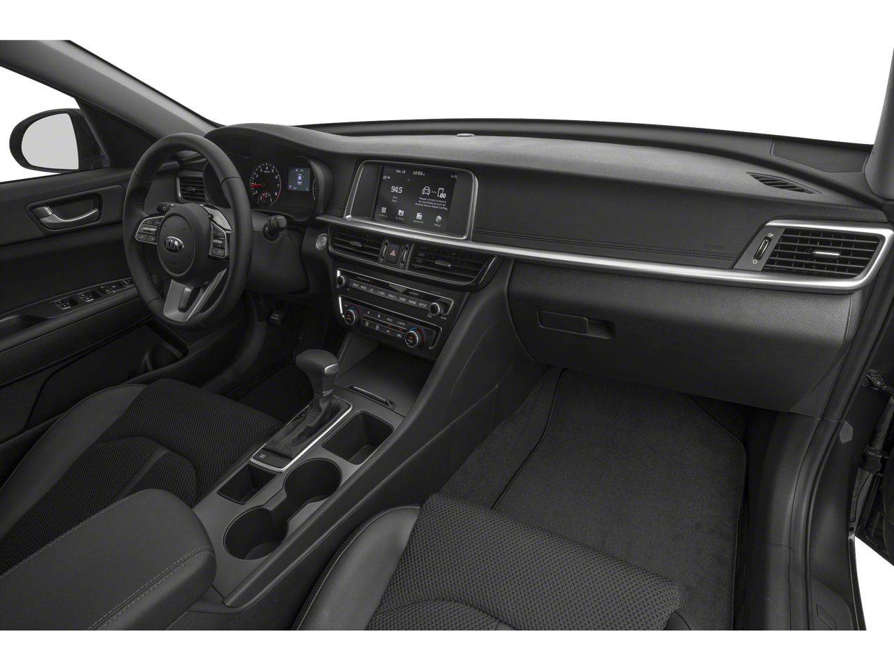 The interior of this Optima S is packed with premium amenities, including automatic climate control, power driver's seat, and a premium audio system with SiriusXM radio. The spacious cabin offers ample room for passengers and cargo, with a 60/40 split-folding rear seat for added versatility.