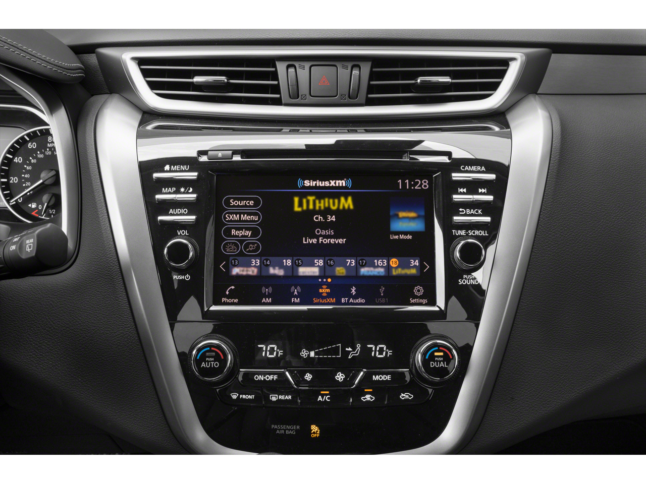 - Radio: AM/FM/CD/MP3/WMA Audio System -inc: Bose premium audio system w/11 speakers plus dual driver subwoofer, NissanConnect w/navigation featuring Apple CarPlay and Android Auto, Nissan door to door navigation w/3D building graphics and satellite imagery, connected navigation features including online POI search, door-to-door and online premium traffic information, SiriusXM Travel Link (weather, fuel prices, movie listings, stock info, sports and parking), SiriusXM Traffic, auxiliary audio input jack, SiriusXM satellite radio, A-IVI 8" display, 2 front illuminated USB connection ports (1 type-A, 1 type-C) for iPod interface and other compatible devices, Bluetooth® hands-free phone system, streaming audio via Bluetooth®, hands-free text-messaging assistant, Siri Eyes Free and 2 rear illuminated USB charge ports (1 type-A, 1 type-C)